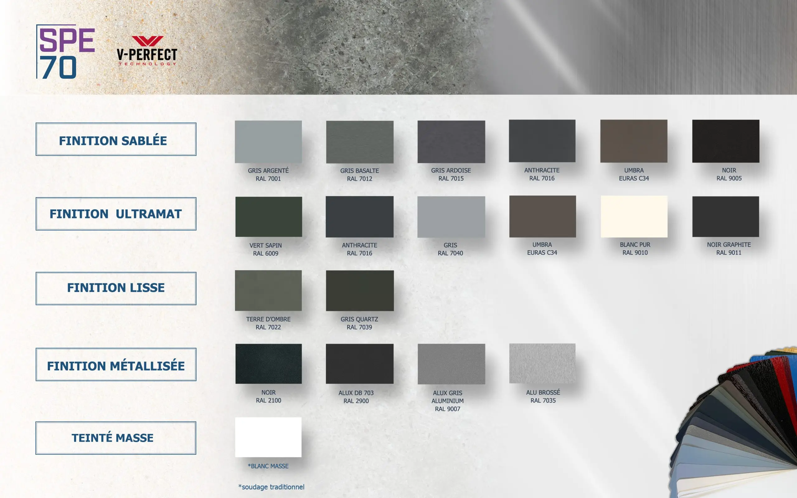 Les teintes de la gamme SPE 70