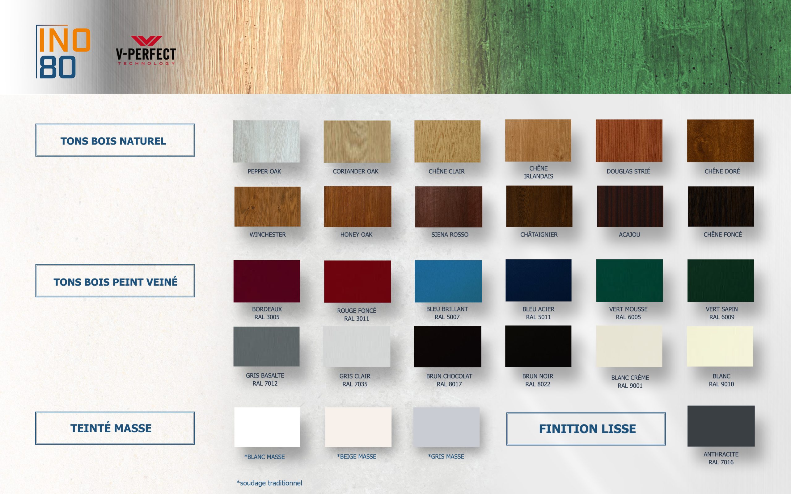 La gamme INO 80 regroupe l’ensemble des teintes boisées, idéales pour un rendu chaleureux et authentique ou apporter une touche colorée à votre intérieur.