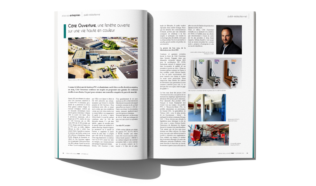 👉 Nous avons le plaisir d’être à l’honneur dans le numéro 167 (édition octobre 2025) du magazine L’Echo de la baie. Cet article met en lumière le savoir-faire et les récentes actualités de Côté Ouverture, notamment :